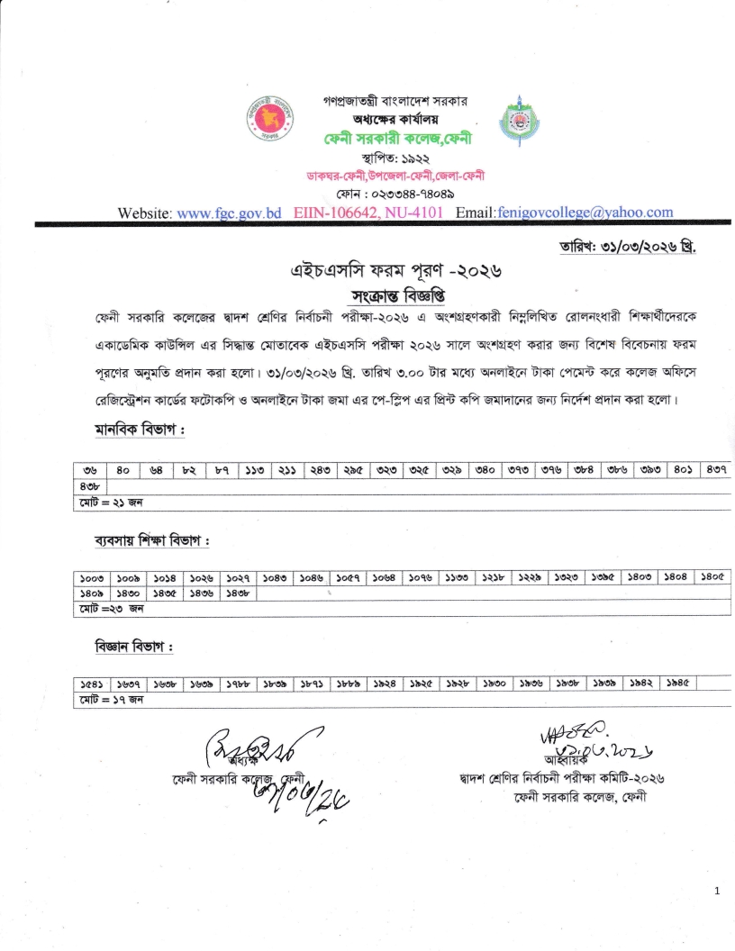 এইচএসসি পরীক্ষা-২০২৬ এ বিশেষ বিবেচনায় ফরম পূরণের জন্য যোগ্য শিক্ষার্থীদের তালিকা Download