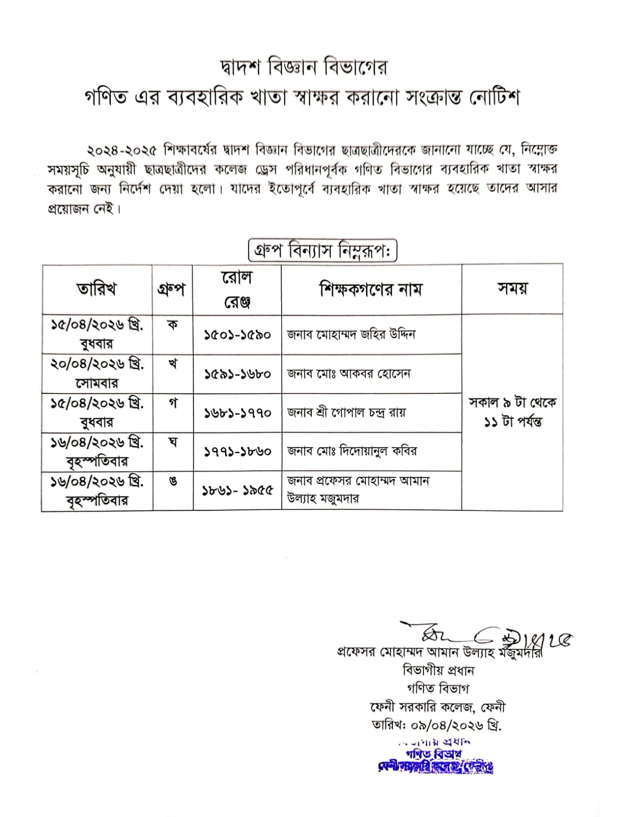 দ্বাদশ শ্রেণির গণিত বিষয়ের ব্যবহারিক খাতা স্বাক্ষর সংক্রান্ত বিজ্ঞপ্তি Download