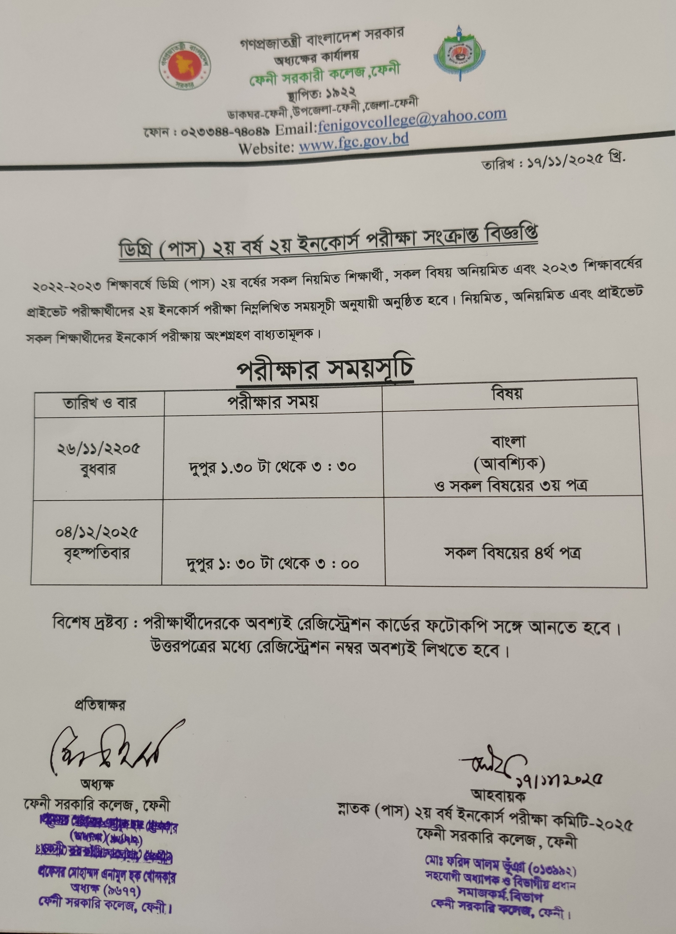 ডিগ্রি (পাস) ২য় বর্ষ ইনকোর্স পরীক্ষার সময়সূচি |
