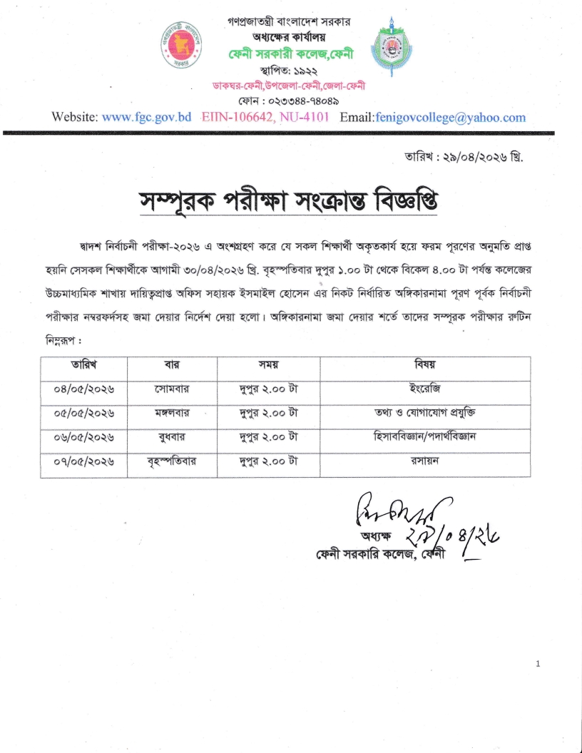 সম্পূরক পরীক্ষা সংক্রান্ত বিজ্ঞপ্তি